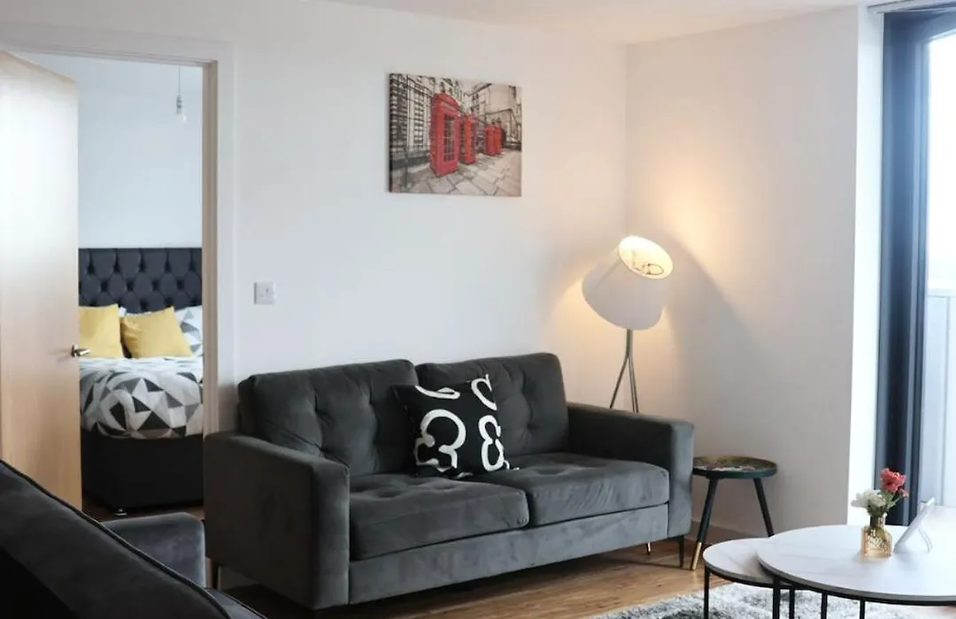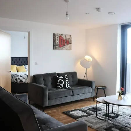 Appartamento Luxury 2 Bed 13Th Floor View Of Old Trafford, di 15 m², dispone di un balcone e una cucina e di comfort come un impianto di climatizzazione.